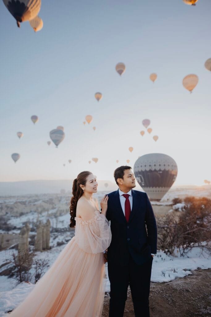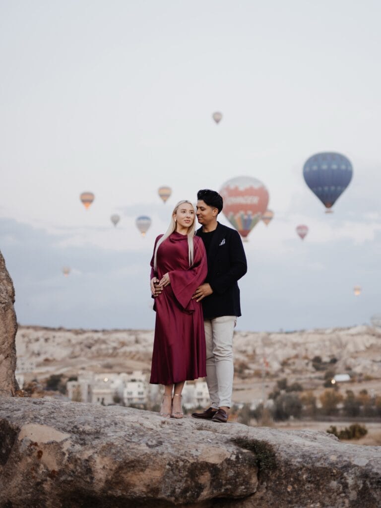 - The shoot takes place at sunset in a private area located approximately 30 minutes from the Cappadocia region